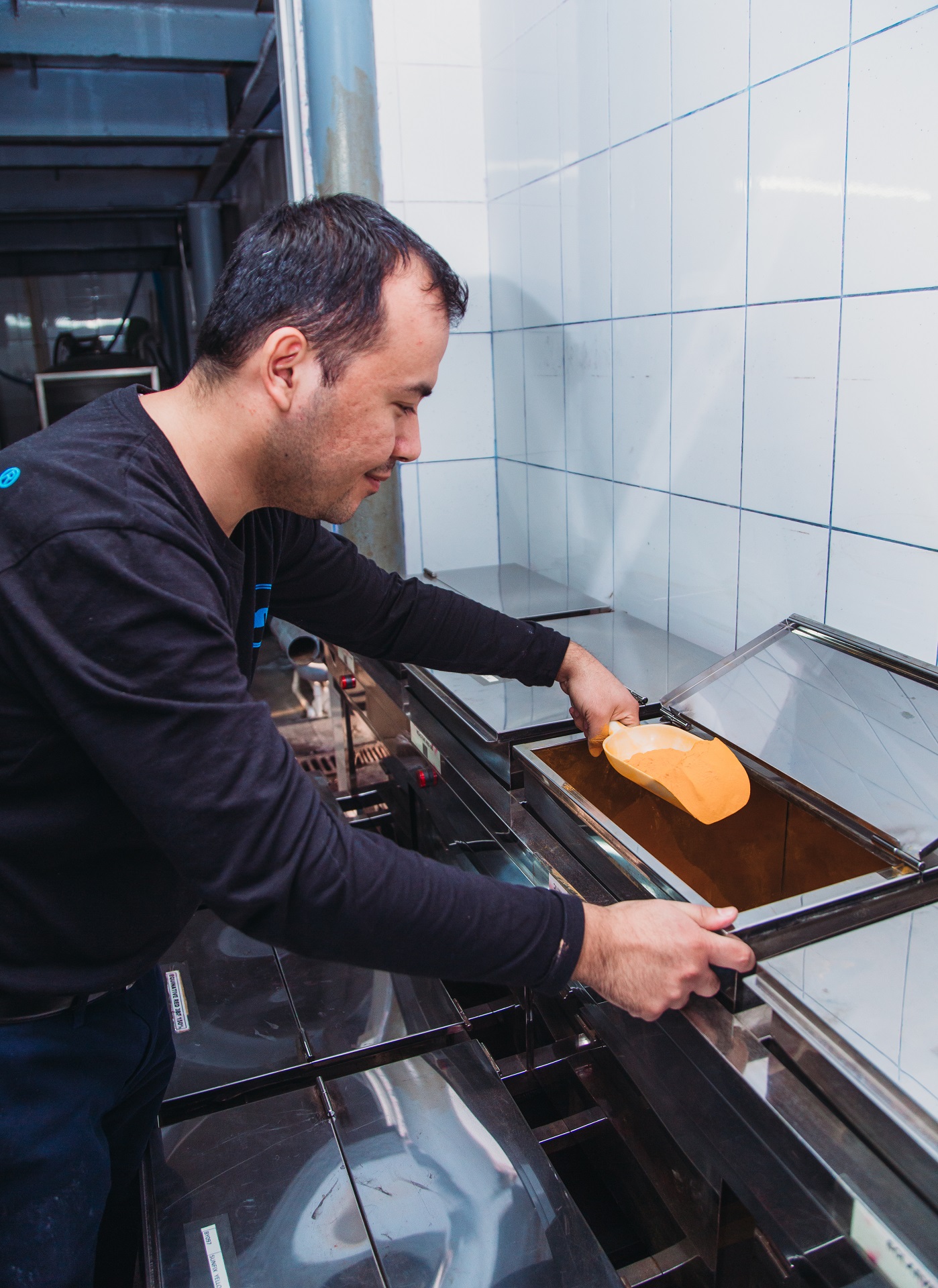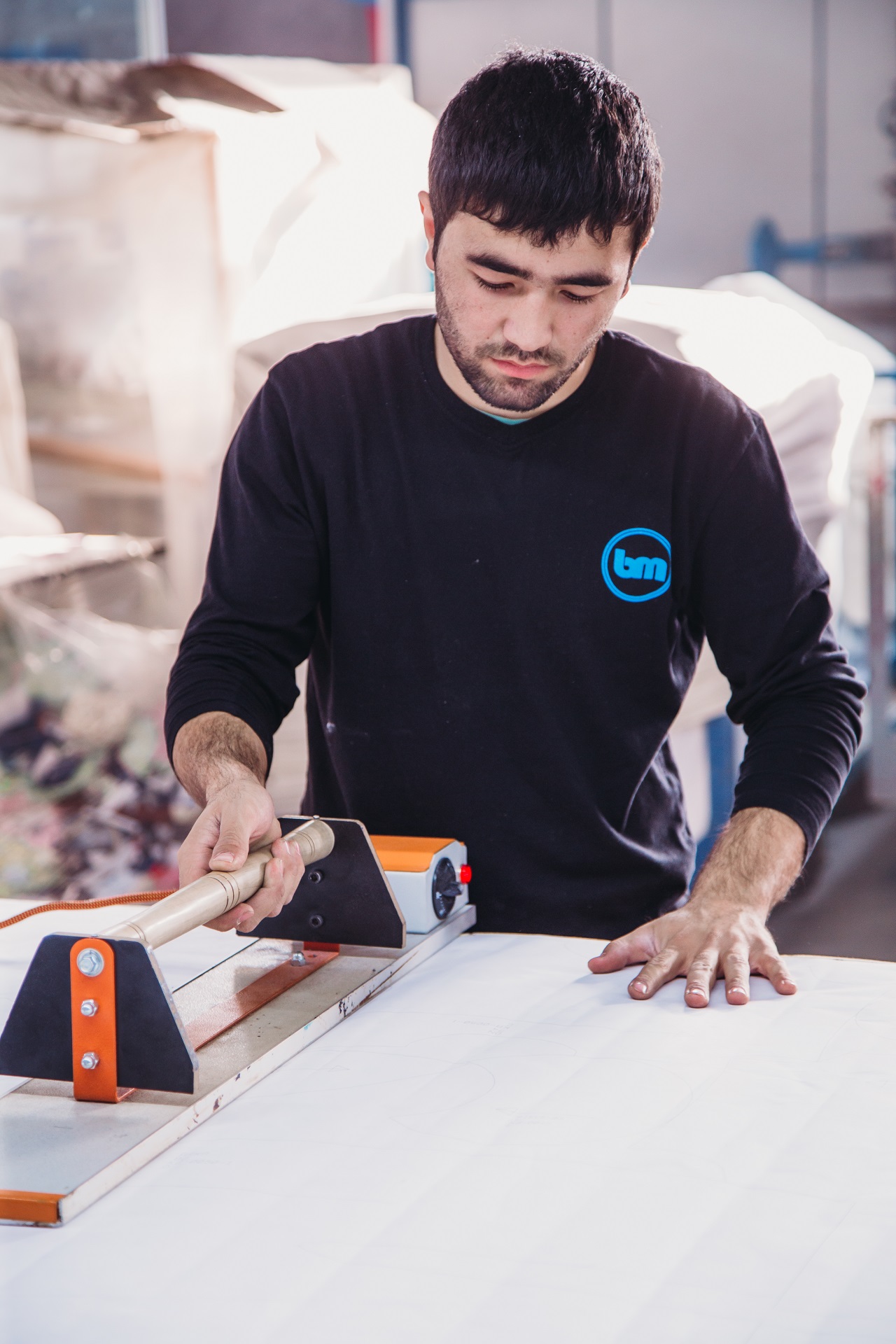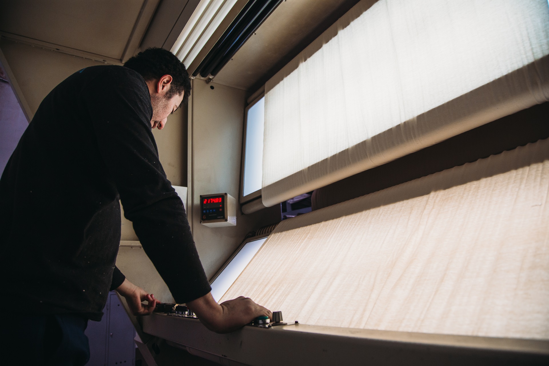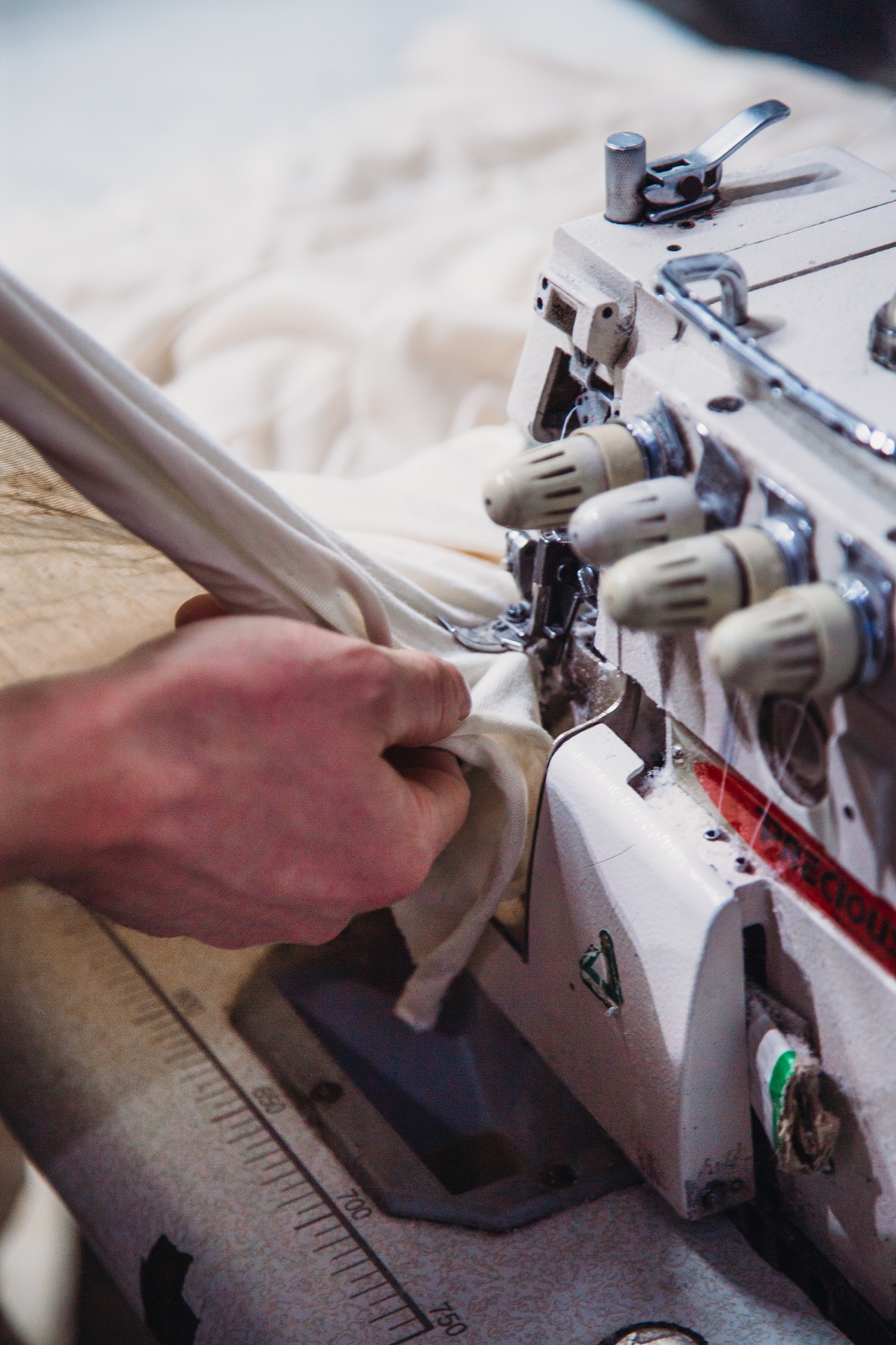 La nostra produzione si articola in quattro fasi: Filatura, Maglieria, Tintura, Stampa e Confezione.