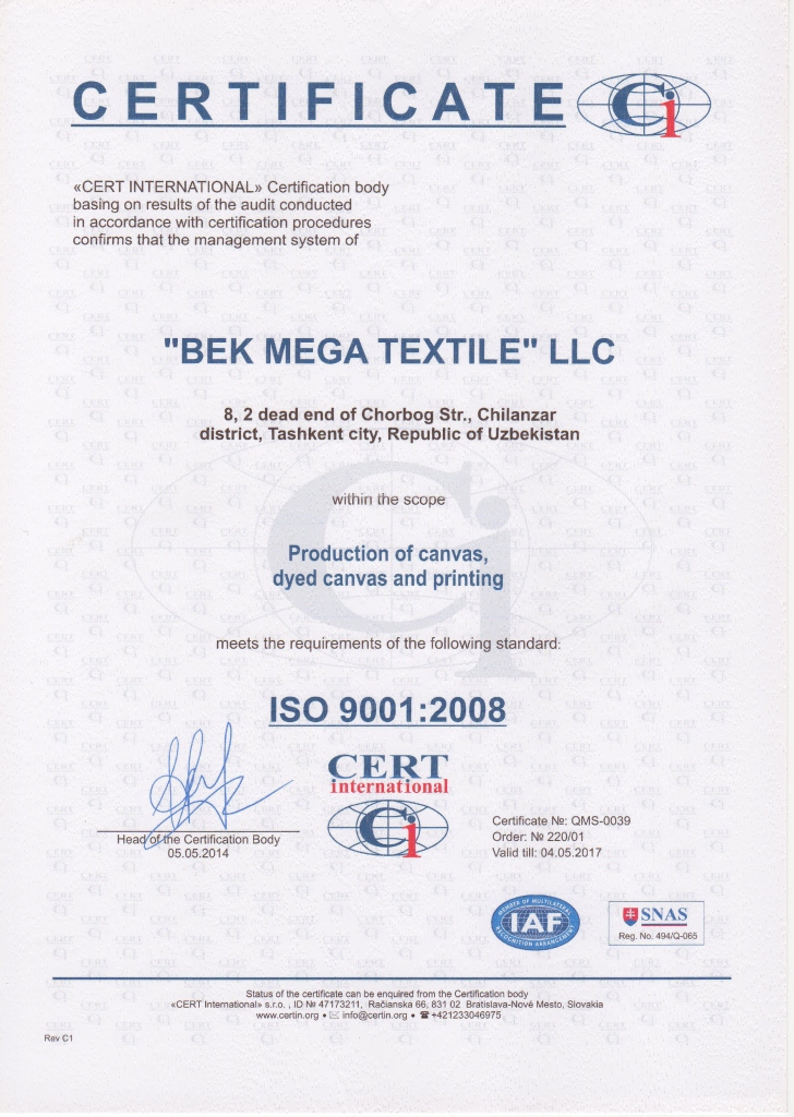 BEK MEGA TEXTILE stosuje szczegółowy system regulacyjny, koncentrując się na:
